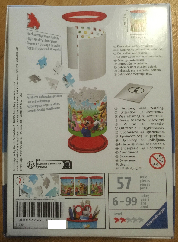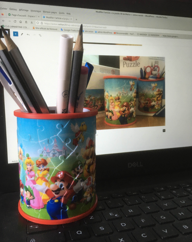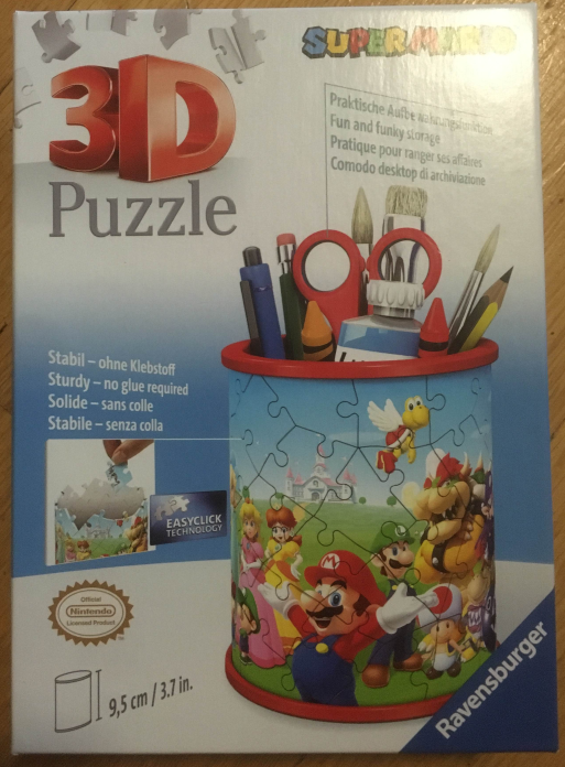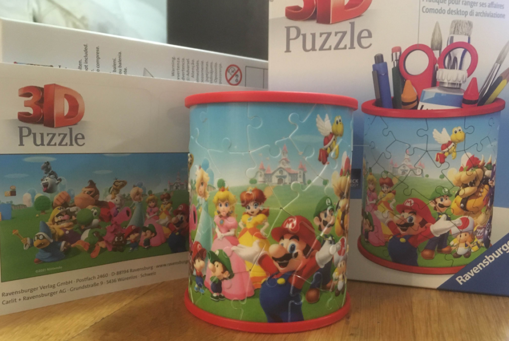 Nous nous baladions avec mon père dans la rue quand nous avons vu un puzzle dans un magasin .Il était marrant et on s’est directement dit que se serait super que je le fasse .Si vous voulez l’acheter voici un lien qui vous le permettra : https://www.ravensburger.fr/produits/puzzle-3d/puzzles-3d-objets-%C3%A0-fonction/puzzle-3d-pot-%C3%A0-crayons-super-mario-11255/index.html
